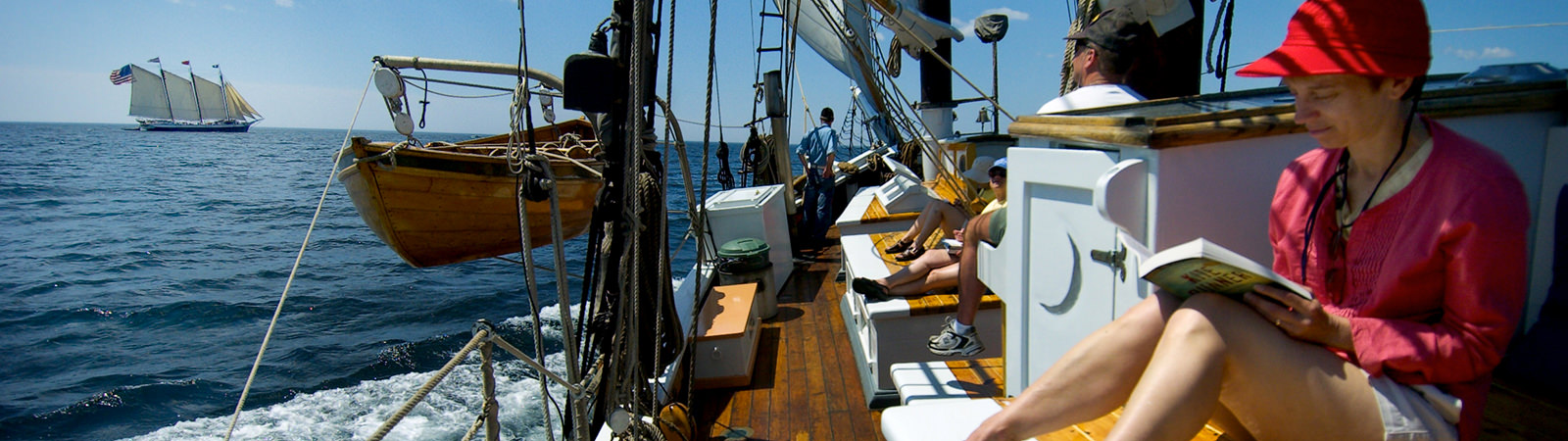 Spend the days trimming sails, steering the schooner, learning about the Maine coast and wildlife, or just sit back, read a book, and watch the scenery drift past. We often see bald eagles, seals, porpoises and occasionally whales. The galley crew cooks up delicious meals on our wood cookstove, so those sea going appetites will be satisfied and then some. When the sun begins to set, the French will settle into a cozy harbor and swing silently at anchor.
